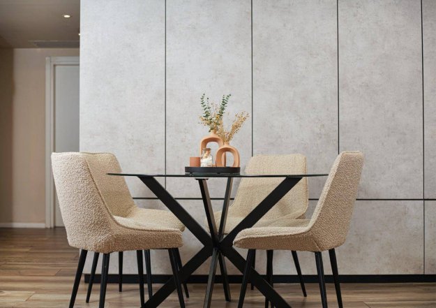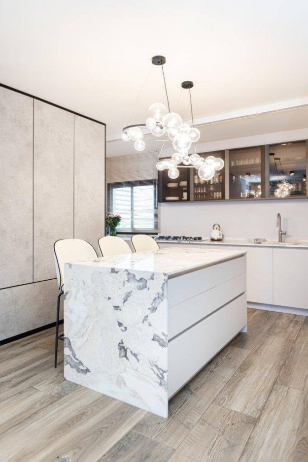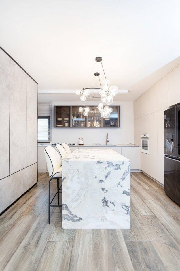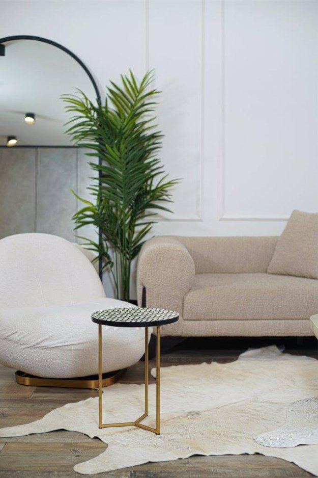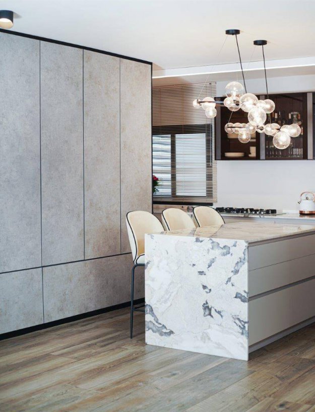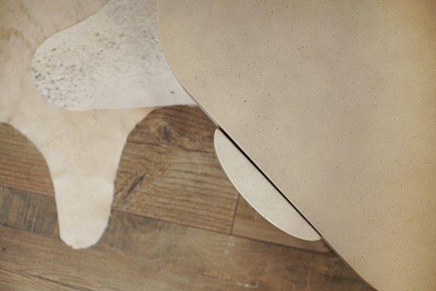 שולחן סלוני מבטון עדין בצורה אמורפית שיש מסוג גרניט טבעית שלא מאפשר לאף אחד להישאר אדיש אליו. השיש סחף את הבית למקום רך וחדש.