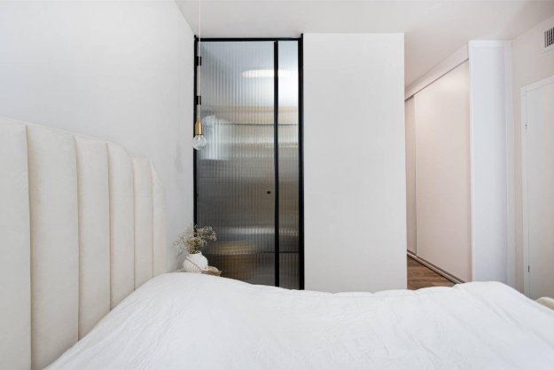 פלטת החומרים נשמרה וחזרה על עצמה לאורך כל הפרויקט הצבעים הלבנים בהירים והחומים העדינים מייצרים מימד ועומק בצבעים.