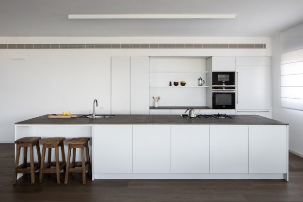 משטח אי מגרניט בגימור מט וכיור בנוי